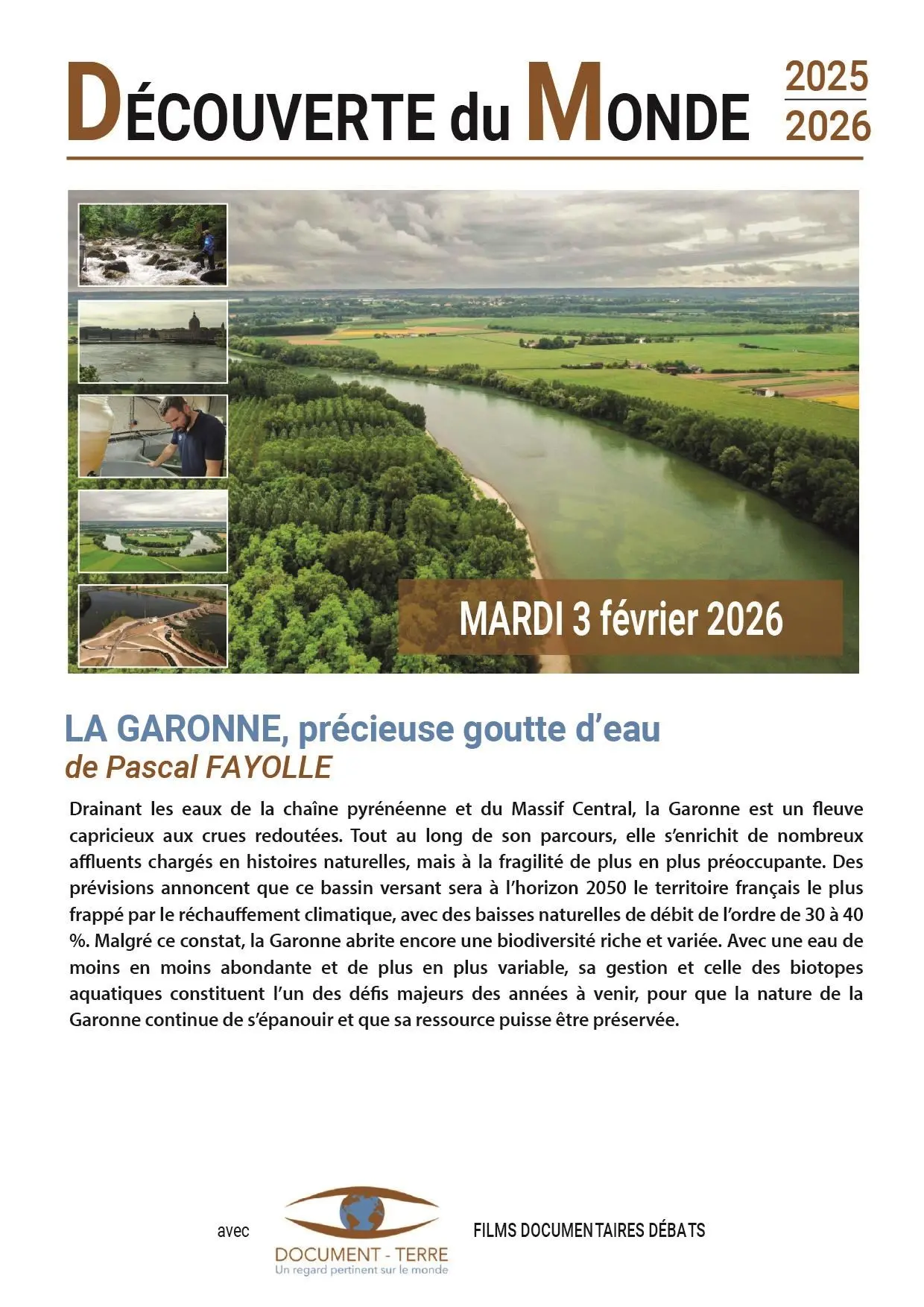 CINÉMA LE CONNÉTABLE / CONNAISSANCE DU MONDE / DOCUMENT TERRE"LA GARONNE" - DE PRÉCIEUSES GOUTTES D’EAU -