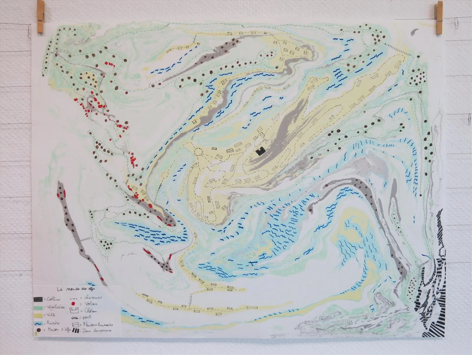 Dans une ambiance de travail joyeuse, ce stage propose aux enfants de 6 à 10 ans, de réaliser leur propre carte au trésor. Ils réaliseront dans un premier temps une grande impression avec la technique du papier marbré. Une fois leur fond de carte imprimé et grâce à des exemples de cartes déjà réalisées, les enfants pourront se réapproprier le langage cartographique pour créer un monde à eux où tout est possible.