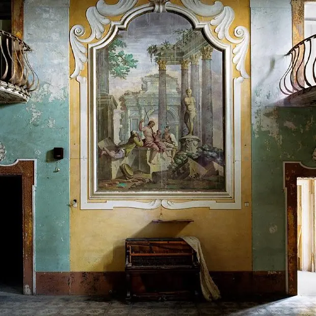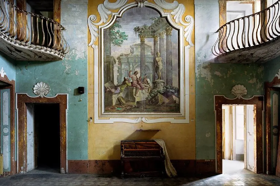 Avec Veduta, T. Jorion nous plonge dans une Italie oubliée, photographiée entre 2009 et 2024. Pendant près de vingt ans, il a parcouru la péninsule pour capturer palais, villas et jardins abandonnés, témoins silencieux d’une splendeur passée. Ses images, qui prolongent l’esthétique du védutisme du XVIIIe siècle, s’attachent non plus aux façades monumentales mais aux intérieurs : fresques fanées, pièces effondrées, détails où chaque trace du temps devient une composition. Plus qu’une simple documentation de la ruine, son regard en révèle la dimension poétique, narrative et presque onirique.