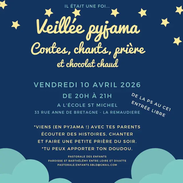 La paroisse Saint-Barthélemy entre Loire et Divatte invite tous les enfants de 3 à 8 ans à une nouvelle veillée pyjama !