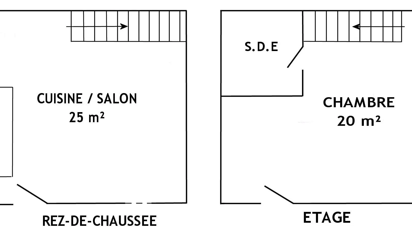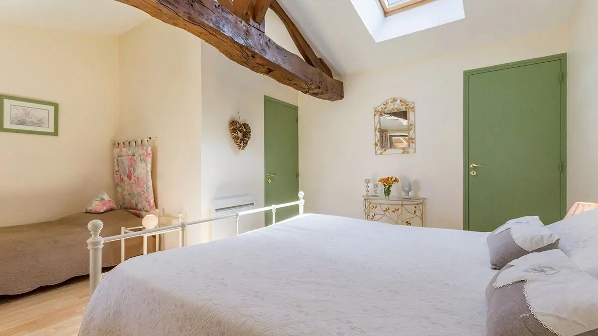 Etage: 1 chambre (lit 160x200 + lit 90x190), salle d'eau/wc.