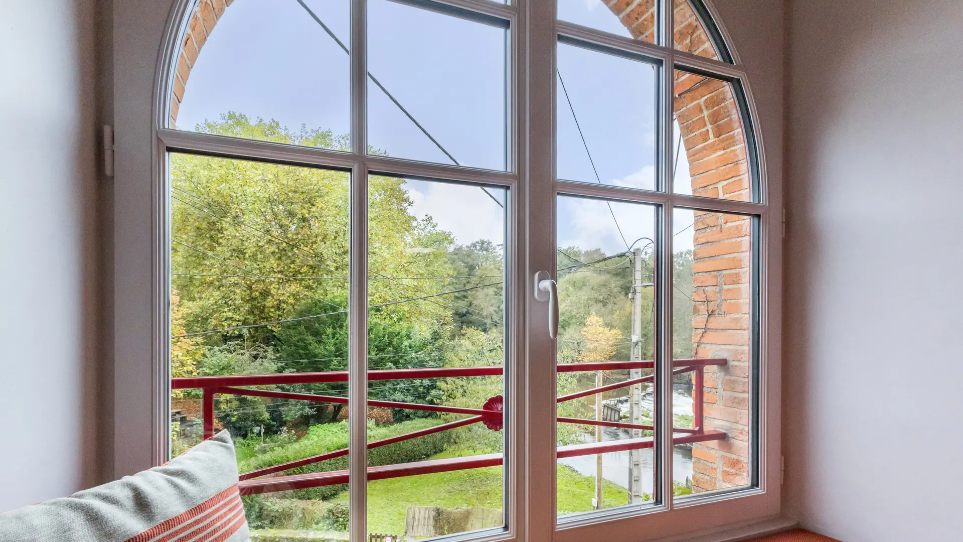 Charmants espaces extérieurs sur 2 niveaux (sud et ouest) non-clos, avec vue sur la rivière.