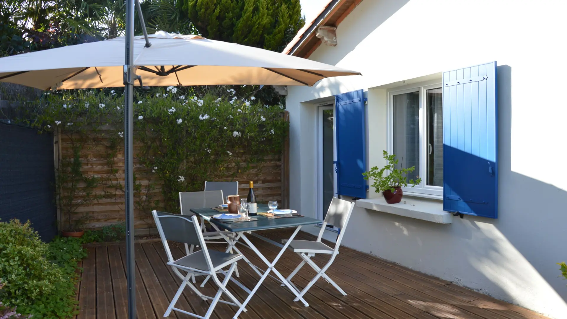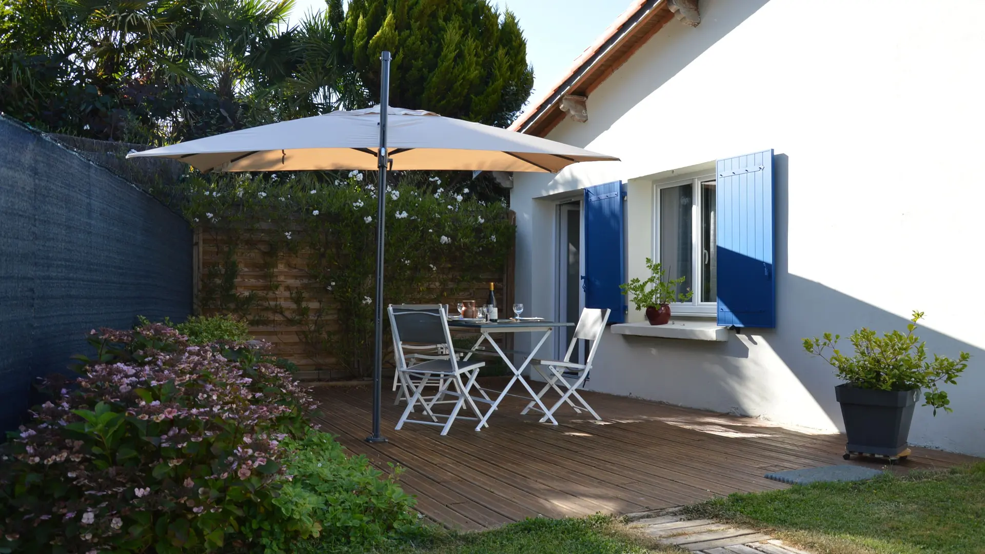 Maison indépendante Lumineuse et entièrement rénové de plain pied sur jardin privatif clos de 450 m², avec terrasse bois. Espace vert planté et abri de jardin.
