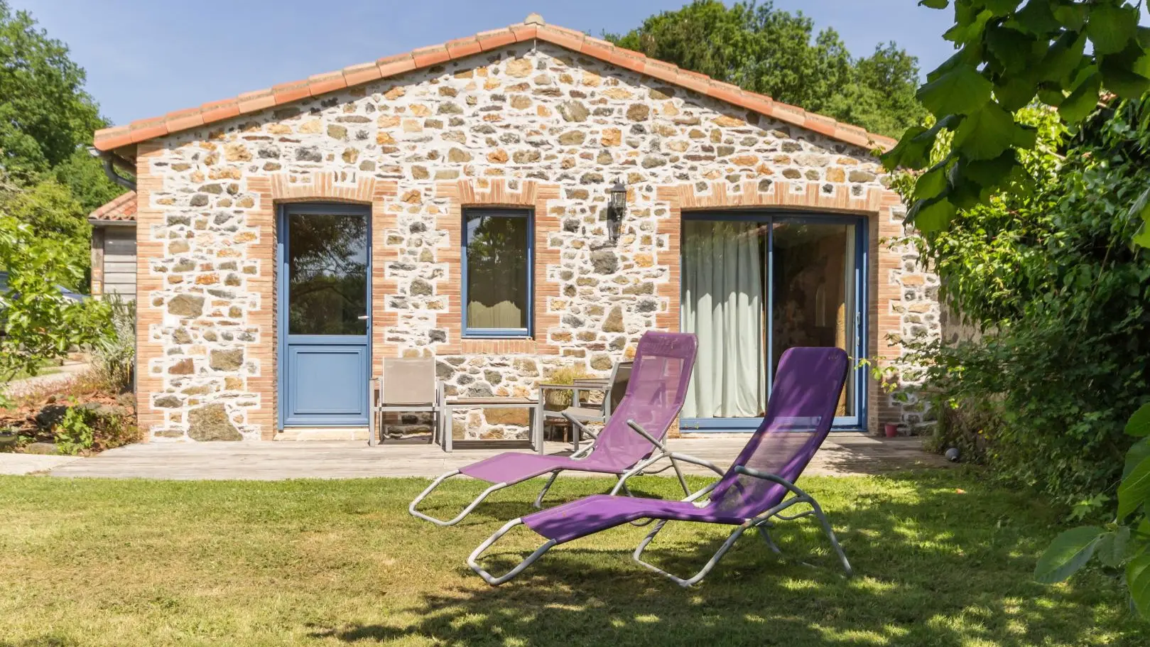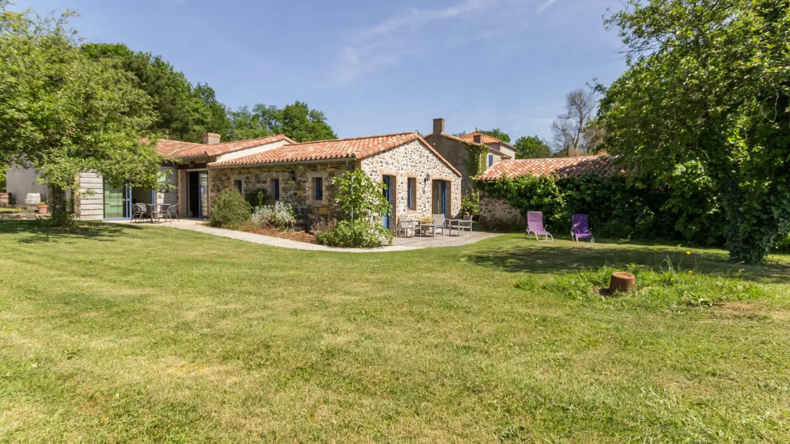 MAISON CONFORTABLE de plein pied dans une Ancienne cave restaurée située dans un charmant petit village, au coeur du Vignoble Nantais. Jardin arboré de 200 m² avec vue sur les vignes, terrasse privative pour chaque chambre. 3 chambres d'ambiance différente