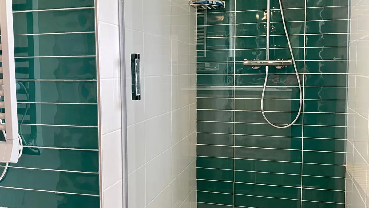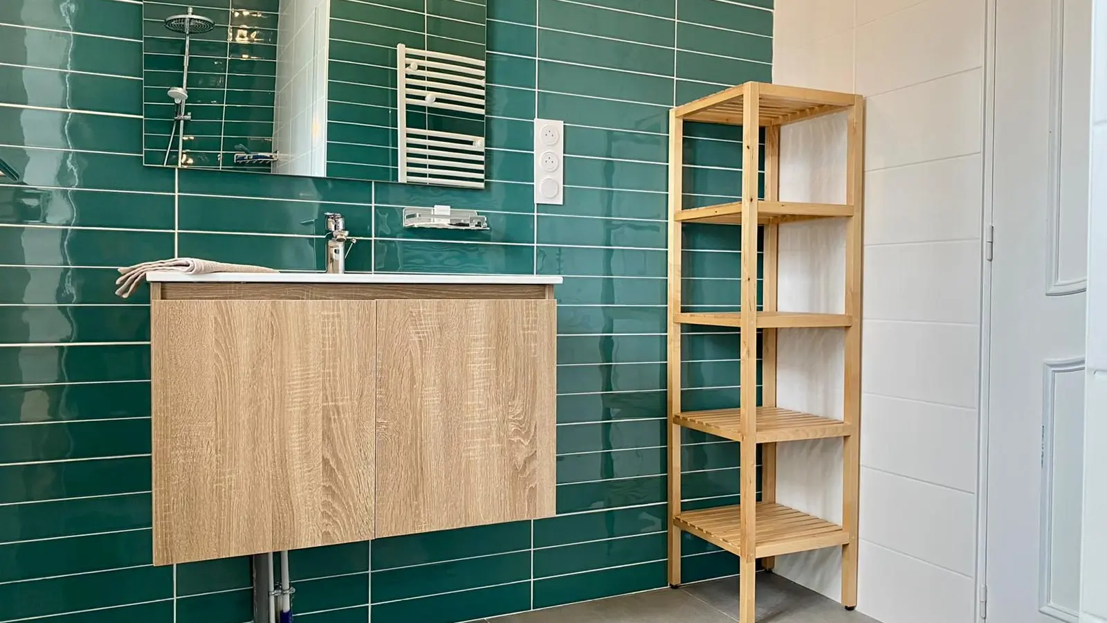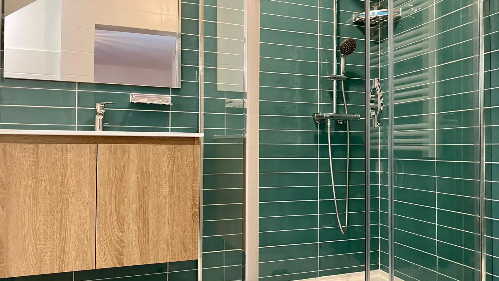 RDC: 1 chambre (lit 160x200) avec salle d'eau/wc privatifs (accès indépendant possible par l'extérieur).