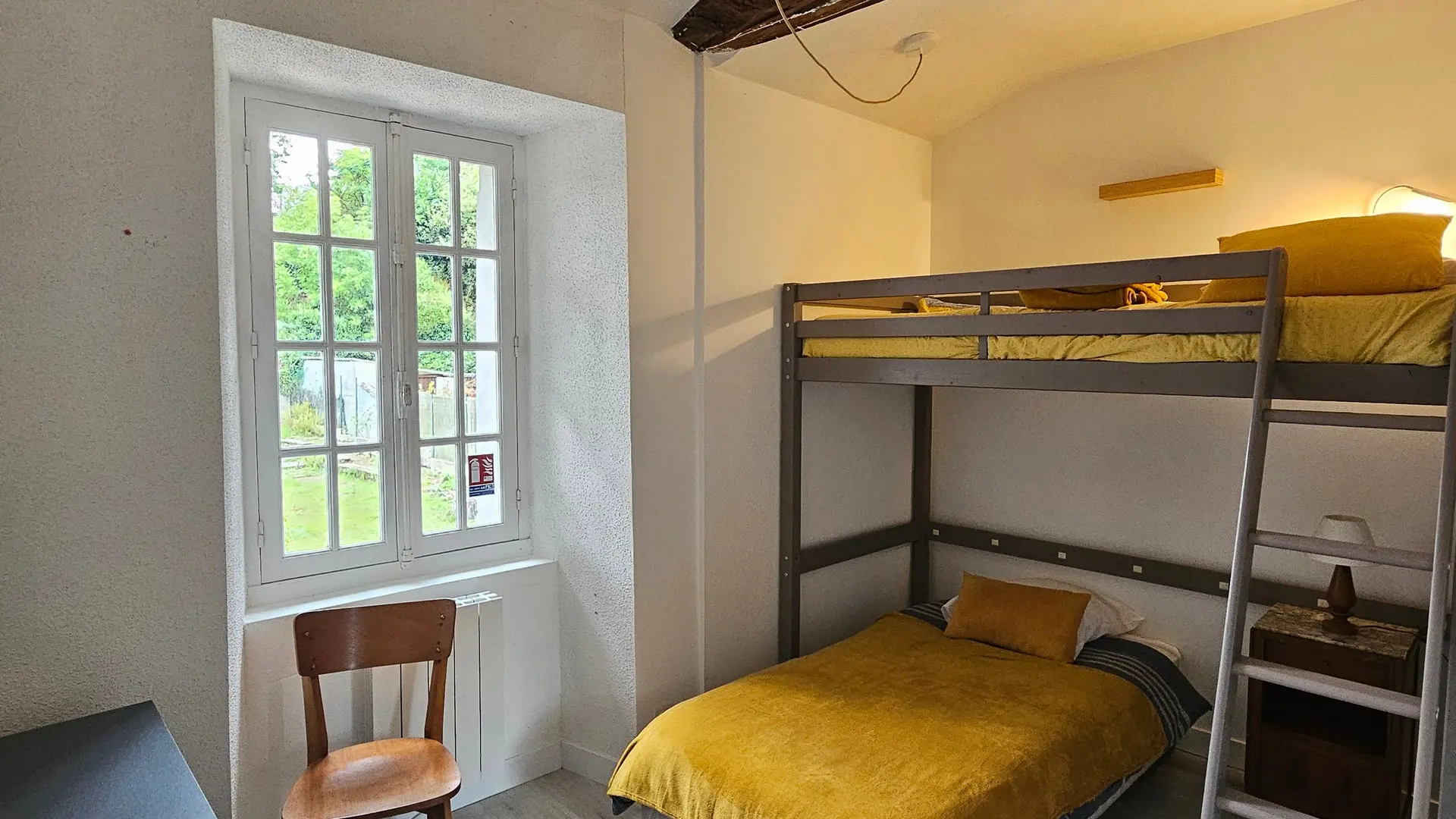 1er étage : spacieuse et lumineuse pièce de vie avec vue sur la Sèvre composée d'un salon/séjour (cheminée) avec cuisine ouverte séparée, 3 chambres (1: 2 lits 80x200 jumelables, 2: 2 lits 90x200, 3: 2 lits 90x190 superposés), salle d'eau et WC indépendant.