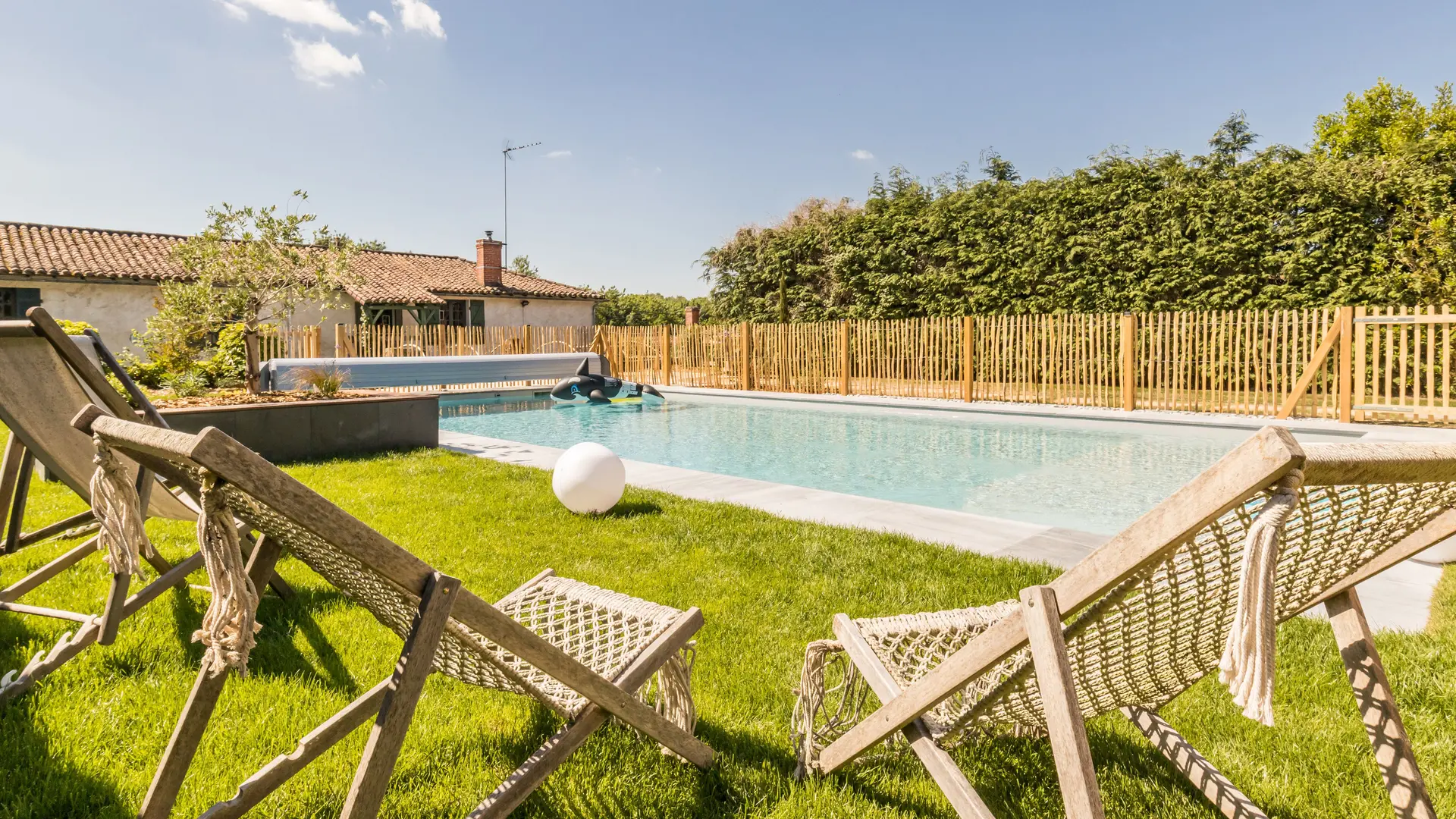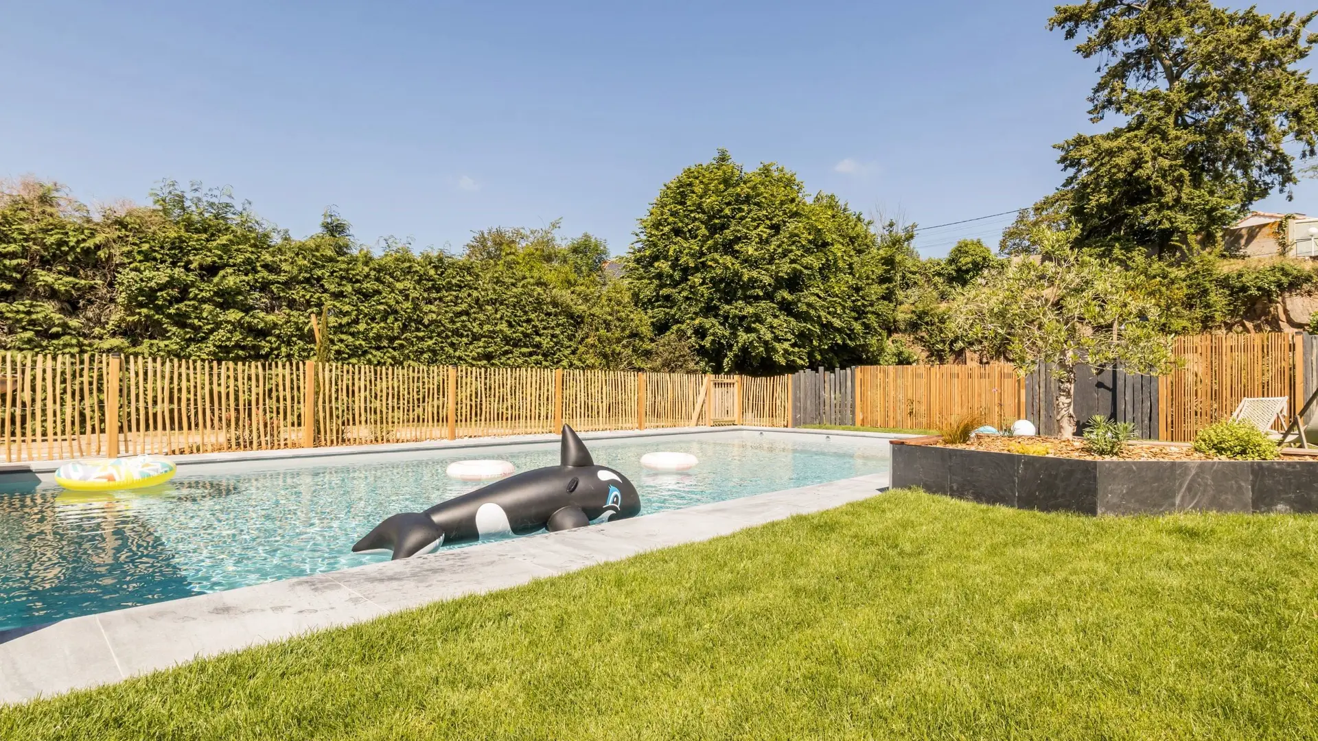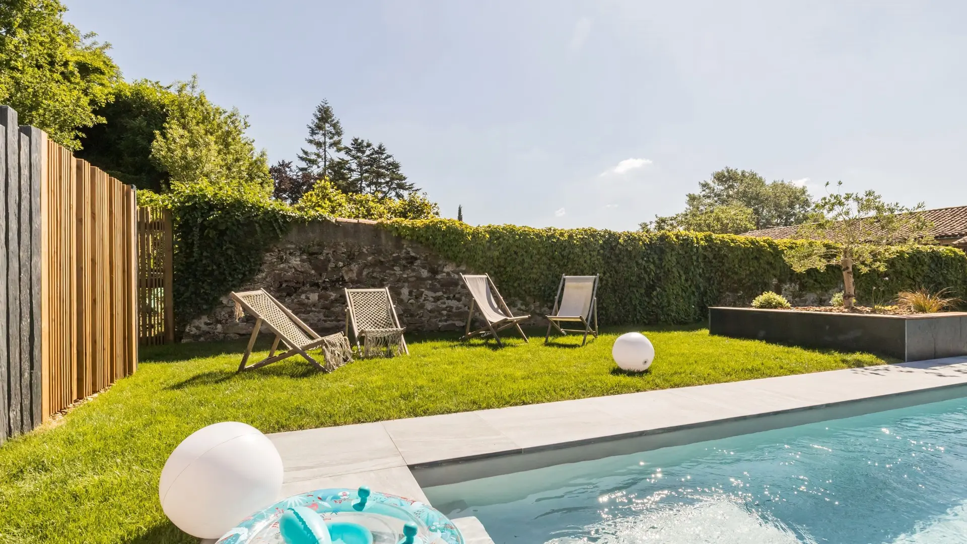 Jardin privatif clos de 200 m² orienté nord/est, et accès à la piscine chauffée de mi-avril à mi-octobre commune avec les propriétaires (12x6m). Ping-pong, 3 canoës et 2 paddles à disposition.